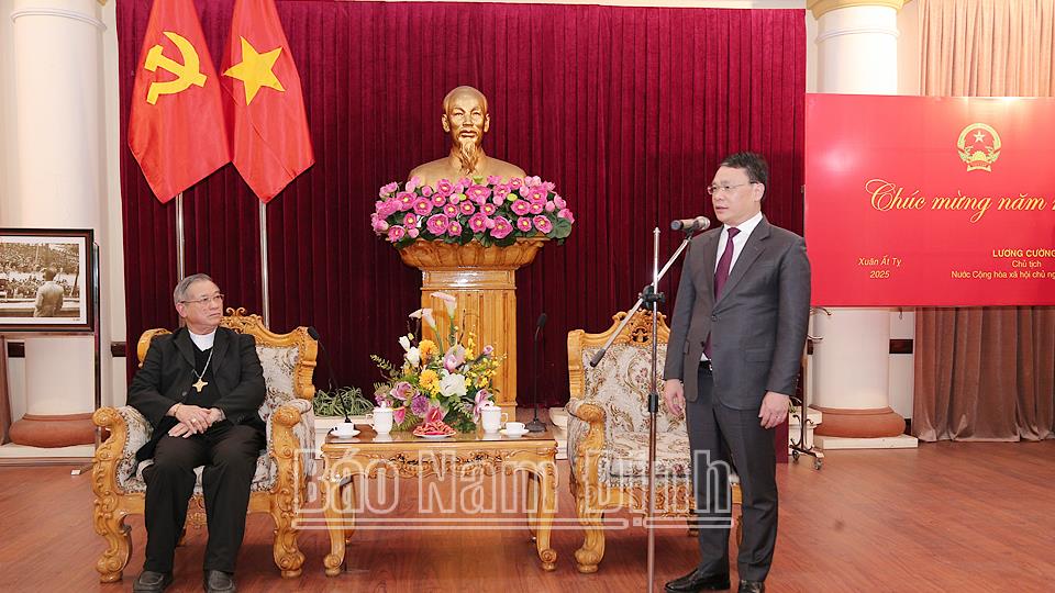 Nhân kỷ niệm 95 năm Ngày thành lập Đảng Cộng sản Việt Nam (3/2/1930 – 3/2/2025) và chuẩn bị đón Tết Nguyên đán Ất Tỵ 2025, ngày 17/1, Đoàn đại biểu Tòa Giám mục Bùi Chu do Giám mục Tôma Vũ Đình Hiệu làm Trưởng đoàn đến thăm, chúc Tết Tỉnh ủy, UBND tỉnh.