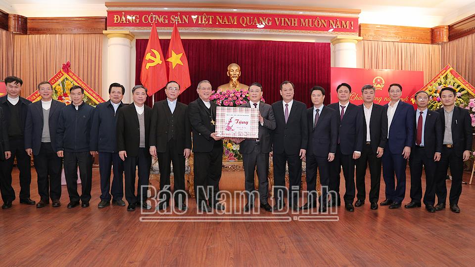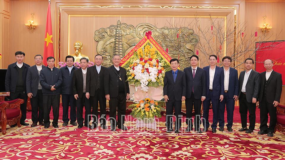 | Đoàn đại biểu Tòa Giám mục Bùi Chu tặng hoa chúc Tết UBND tỉnh. |