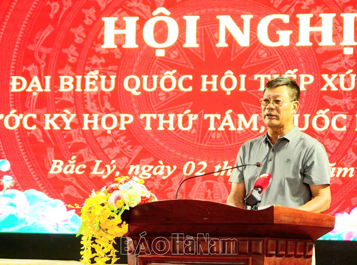 Tiếp tục chương trình tiếp xúc cử tri trước Kỳ họp thứ 8, Quốc hội khóa XV, chiều 2/10, các đồng chí: Phạm Hùng Thắng, TUV, Phó trưởng Đoàn đại biểu Quốc hội (ĐBQH) tỉnh; Trần Văn Khải, Ủy viên Thường trực Ủy ban Khoa học, Công nghệ và Môi trường của Quốc hội, ĐBQH tỉnh đã tiếp xúc cử tri tại các xã Bắc Lý, Chân Lý, Trần Hưng Đạo (huyện Lý Nhân). Cùng dự hội nghị tiếp xúc cử tri có đại diện Ủy ban MTTQ tỉnh; một số sở, ban, ngành, đoàn thể của tỉnh; cấp ủy, chính quyền địa phương.
