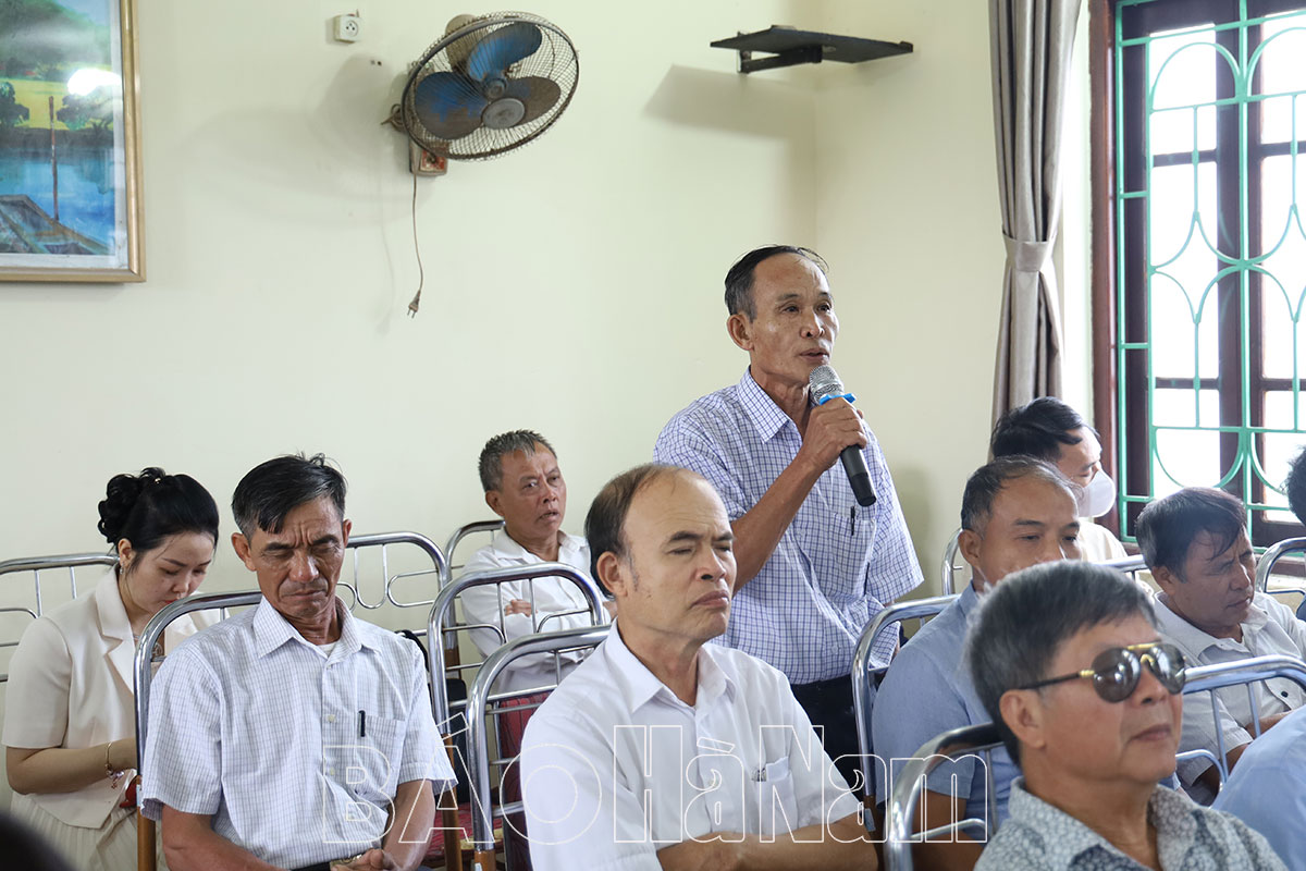Cử tri phường Lam Hạ đã phát biểu nêu kiến nghị với Đại biểu Quốc hội tập trung vào một số nội dung: Mong muốn Quốc hội xem xét, thông qua Luật Đất đai sửa đổi tới đây đảm bảo giá bồi thường đối với đất nông nghiệp, đất ở linh hoạt, sát với giá thực tế của thị trường; chính sách bố trí tái định cư theo hướng có lợi nhất cho người dân khi di chuyển về nơi ở mới; Đoàn Đại biểu Quốc hội tỉnh quan tâm, trao đổi, kiến nghị các cơ quan chức năng sớm có giải pháp tháo gỡ, giải quyết dứt điểm quyền lợi về đất hỗ trợ 18m2/sào, đất dịch vụ 7% của người dân bị thu hồi đất nông nghiệp; các dự án đã được quy hoạch trên địa bàn phường sớm triển khai để người dân ổn định cuộc sống; không nên để dự án “treo” ảnh hưởng đến sự phát triển của tỉnh, thành phố Phủ Lý và người dân nơi có quy hoạch dự án; kiến nghị một số dự án của Trung ương sớm hoàn thiện đưa vào hoạt động, tránh lãng phí nguồn lực của nhà nước; quan tâm, xem xét chế độ trợ cấp hàng tháng đối với quân nhân tham gia kháng chiến chống Mỹ có thời gian phục vụ trong quân ngũ từ 10 – 15 năm, đối tượng này khi thực hiện Quyết định 142/2008 của Thủ tướng Chính phủ chỉ được giải quyết trợ cấp 1 lần; quan tâm hỗ trợ bảo hiểm y tế với các Cựu chiến binh có thời gian tham gia chiến tranh bảo vệ Tổ quốc ở biên giới phía Bắc từ tháng 2/1079 đến ngày 31/12/1988 trên toàn địa bàn 6 tỉnh phía Bắc; quan tâm hơn nữa đến người cao tuổi; quan tâm, bố trí đầy đủ nguồn lực về đội ngũ giáo viên, cơ sở vật chất trang thiết bị cho cơ sở giáo dục trong quá trình thực hiện Đề án đổi mới giáo dục căn bản, toàn diện…