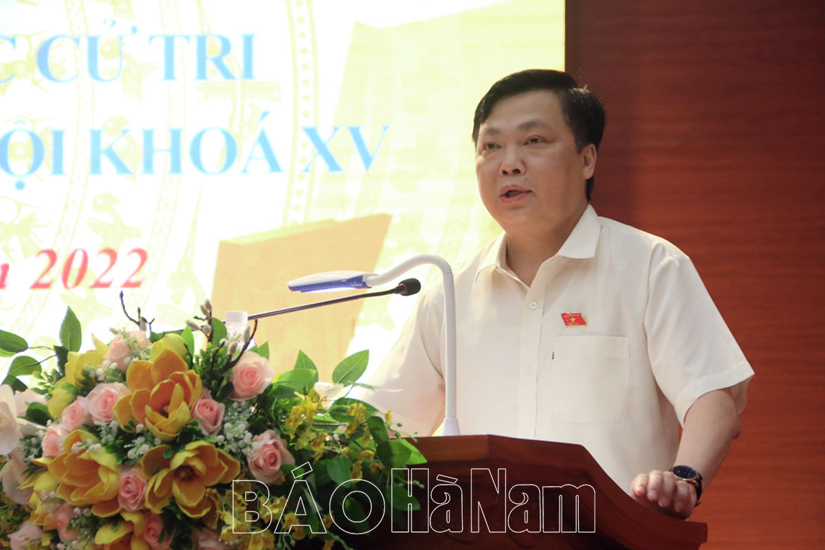 Một số kiến nghị cụ thể: Cử tri thị xã Duy Tiên kiến nghị quan tâm thu hút đầu tư vào khu đại học Nam Cao; quan tâm xây dựng khu nhà ở cho công nhân các KCN và quy hoạch thị xã và phát triển kinh tế vùng… Cử tri huyện Bình Lục kiến nghị quan tâm khắc phục những tồn tại tình trạng ô nhiễm nguồn nước mặt trên địa bàn tỉnh Hà Nam nói chung, huyện Bình Lục nói riêng…