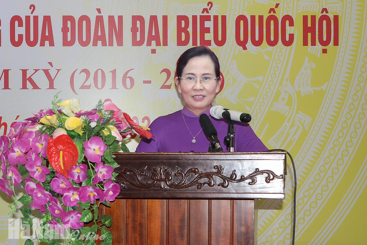 Phát biểu tại hội nghị, đồng chí Lê Thị Thủy, Ủy viên Trung ương Đảng, Bí thư Tỉnh ủy, Trưởng Đoàn ĐBQH tỉnh khóa XIV khẳng định: Nhiệm kỳ Quốc hội khóa XIV, Đoàn ĐBQH và các vị ĐBQH tỉnh đã luôn nêu cao tinh thần trách nhiệm, không ngừng đổi mới hoạt động, tận tụy, tìm hiểu, nghiên cứu và đã hoàn thành tốt nhiệm vụ của người đại biểu nhân dân, góp phần nâng cao chất lượng, hiệu quả hoạt động của Quốc hội, đóng góp tích cực vào phát triển kinh tế – xã hội ở địa phương, xứng đáng với niềm tin của cử tri và nhân dân trong tỉnh.