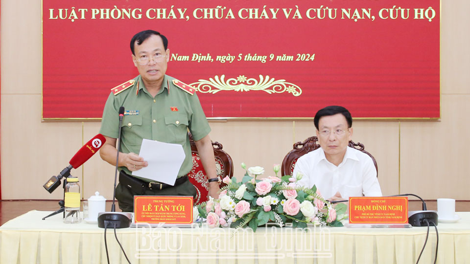 Phát biểu kết luận buổi khảo sát, đồng chí Chủ nhiệm Ủy ban Quốc phòng và An ninh của Quốc hội Lê Tấn Tới nhấn mạnh, dự án Luật PCCC và CNCH là dự án luật quan trọng, liên quan trực tiếp đến hoạt động sản xuất, kinh doanh và đời sống, sinh hoạt của toàn bộ người dân, liên quan đến trách nhiệm của các cấp, các ngành, các cơ quan, tổ chức, cá nhân. Đồng chí đánh giá cao công tác PCCC và CNCH của tỉnh Nam Định trong thời gian qua; ghi nhận sự chuẩn bị chu đáo của tỉnh cho buổi làm việc với đoàn và khẳng định những ý kiến, kiến nghị của tỉnh đối với dự thảo Luật PCCC và CNCH là xác đáng và sát với thực tiễn, góp phần giúp đoàn công tác có thêm nhiều thông tin có giá trị cho việc nghiên cứu, tiếp thu, chỉnh lý dự thảo Luật PCCC và CNCH bảo đảm tính khả thi hơn. Đề nghị tỉnh Nam Định tiếp tục hoàn thiện các nội dung báo cáo, góp ý bằng văn bản thông qua Đoàn đại biểu Quốc hội tỉnh để hoàn thiện dự thảo Luật PCCC và CNCH.
