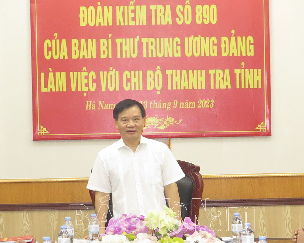 Tiếp tục chương trình làm việc tại tỉnh Hà Nam, sáng ngày 13/9, Đoàn kiểm tra 890 của Ban Bí thư Trung ương Đảng do đồng chí Bùi Văn Thạch, Phó Chánh Văn phòng Trung ương Đảng, Phó trưởng đoàn kiểm tra đã làm việc với Chi bộ Thanh tra tỉnh Hà Nam.