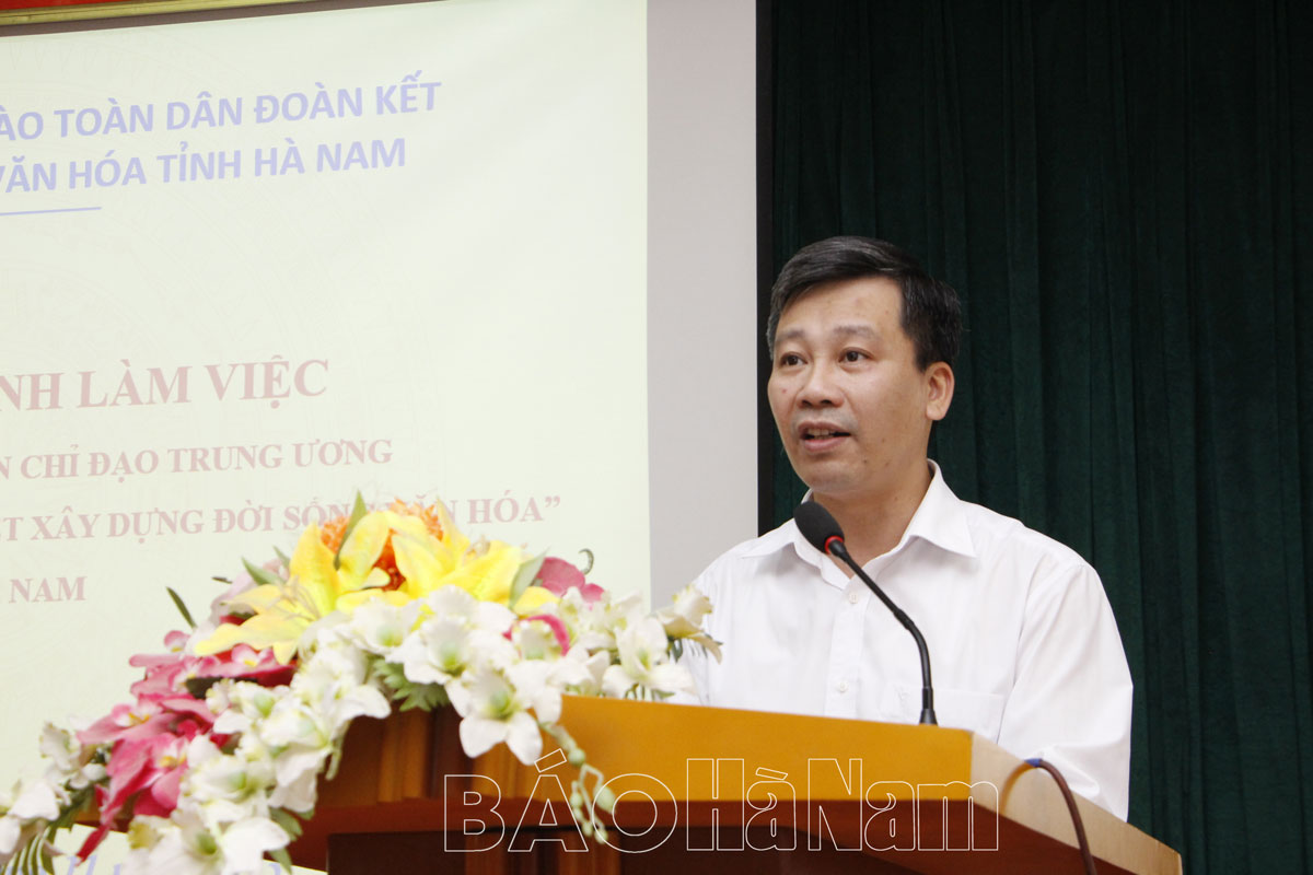 Phát biểu tại hội nghị, đồng chí Nguyễn Đức Vượng, TUV, Phó Chủ tịch UBND tỉnh khẳng định: Những năm qua, tỉnh Hà Nam đã quán triệt và tổ chức thực hiện nghiêm túc sự chỉ đạo của BCĐ Trung ương về xây dựng đời sống văn hóa; phong trào TDĐKXDĐSVH có nhiều chuyển biến tích cực, đóng góp không nhỏ vào phát triển kinh tế- xã hội của tỉnh. Đồng chí cũng đề nghị các địa phương, ban, ngành của tỉnh nghiêm túc tiếp thu các ý kiến đóng góp, gợi ý, chỉ đạo của thành viên trong đoàn để kịp thời khắc phục, nâng cao chất lượng phong trào.