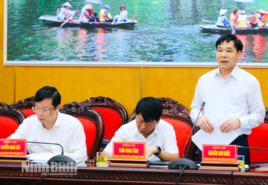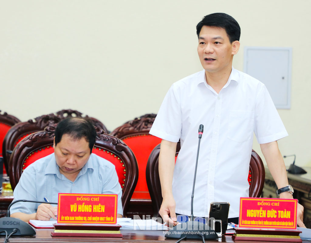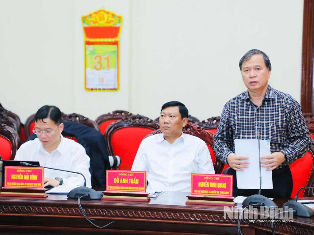 Về định hướng thời gian tới, đồng chí đề nghị Ban Thường vụ Tỉnh ủy Ninh Bình nghiêm túc tiếp thu, sớm khắc phục những hạn chế đã được Đoàn kiểm tra, giám sát chỉ ra; chỉ đạo cấp ủy các cấp tiếp tục rà soát, cập nhật, bổ sung, hoàn thiện Chương trình hành động thực hiện Nghị quyết Đại hội Đảng bộ các cấp, bảo đảm cụ thể, sát thực tiễn gắn với chức năng, nhiệm vụ, phù hợp với đặc điểm tình hình và điều kiện thực tiễn của từng cơ quan, đơn vị.
