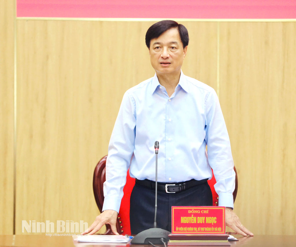 Phát biểu kết luận hội nghị, đồng chí Nguyễn Duy Ngọc, Ủy viên Bộ Chính trị, Bí thư Thành ủy Hà Nội, Trưởng Đoàn kiểm tra, giám sát ghi nhận, đánh giá cao tinh thần trách nhiệm, sự nghiêm túc của Ban Thường vụ Tỉnh ủy Ninh Bình trong việc phối hợp với Đoàn kiểm tra, giám sát; đồng thời khẳng định, tỉnh đã triển khai đồng bộ, bài bản các nội dung liên quan đến việc lãnh đạo, chỉ đạo, tổ chức nghiên cứu, học tập, quán triệt, tuyên truyền và triển khai thực hiện Nghị quyết Đại hội XIV của Đảng; lãnh đạo, chỉ đạo, tổ chức thực hiện Chỉ thị số 01-CT/TW, ngày 23/1/2026 của Bộ Chính trị về nghiên cứu, học tập, quán triệt, tuyên truyền và triển khai thực hiện Nghị quyết Đại hội đại biểu toàn quốc lần thứ XIV của Đảng; Chỉ thị số 46-CT/TW, ngày 16/5/2025 của Bộ Chính trị về lãnh đạo cuộc bầu cử đại biểu Quốc hội khoá XVI và bầu cử đại biểu HĐND các cấp nhiệm kỳ 2026-2031.