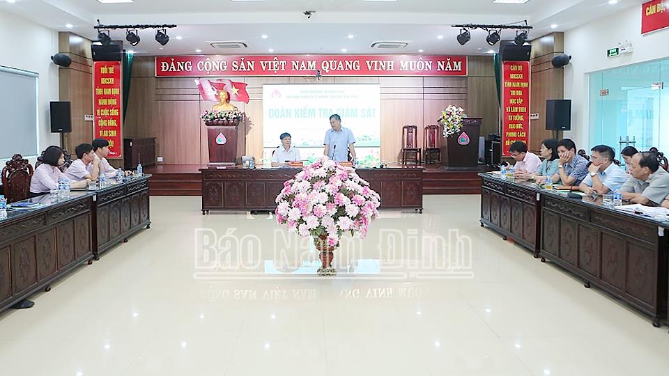 Báo cáo với Đoàn kiểm tra về kết quả hoạt động năm 2023 và 5 tháng đầu năm 2024, Chi nhánh NHCSXH tỉnh cho biết: Ban đại diện HĐQT NHCSXH tỉnh đã bám sát các quy định của pháp luật, sự lãnh đạo, chỉ đạo của cấp trên để triển khai kịp thời, hiệu quả hoạt động tín dụng chính sách, góp phần thực hiện tốt Chương trình mục tiêu quốc gia về giảm nghèo, đảm bảo an sinh xã hội, ổn định đời sống cho nhân dân. Tổng nguồn vốn tín dụng chính sách đến hết tháng 5/2024 đạt 4.585,7 tỷ đồng, tăng 197,6 tỷ đồng so với năm 2023, tăng trưởng 4,5%; tổng dư nợ đạt 4.540 tỷ đồng, tăng 151,9 tỷ đồng so với năm 2023, tăng trưởng 3,5% (tốc độ tăng trưởng toàn quốc 4,9%); với 2.821 tổ tiết kiệm và vay vốn, 100.539 khách hàng còn dư nợ. Đến nay, toàn tỉnh không còn đơn vị có dư nợ dưới 100 tỷ đồng. Có 4 đơn vị có dư nợ trên 500 tỷ đồng (trong đó: Giao Thủy trên 500 tỷ đồng, Nghĩa Hưng trên 600 tỷ đồng, Hải Hậu và Ý Yên trên 700 tỷ đồng). Chất lượng tín dụng được đảm bảo, tỷ lệ nợ xấu chỉ chiếm 0,12% tổng dư nợ.
