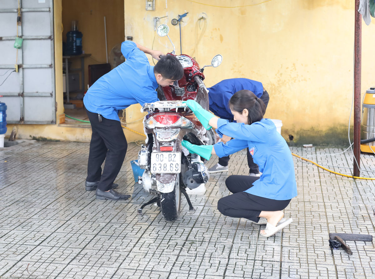 Ngay từ sáng sớm, đã có nhiều người dân mang xe máy, ô tô đến điểm rửa xe của thanh niên đặt tại điểm rửa xe của Bộ Chỉ huy Quân sự tỉnh để được làm sạch. Tuy không phải là những người rửa xe chuyên nghiệp nhưng các bạn đoàn viên thanh niên làm việc chu đáo, nhiệt tình, mỗi người một việc, từ nhận xe, xịt nước làm sạch, cọ rửa, đến lau khô, tất cả đều được hoàn thành một cách nhanh chóng và nhịp nhàng.