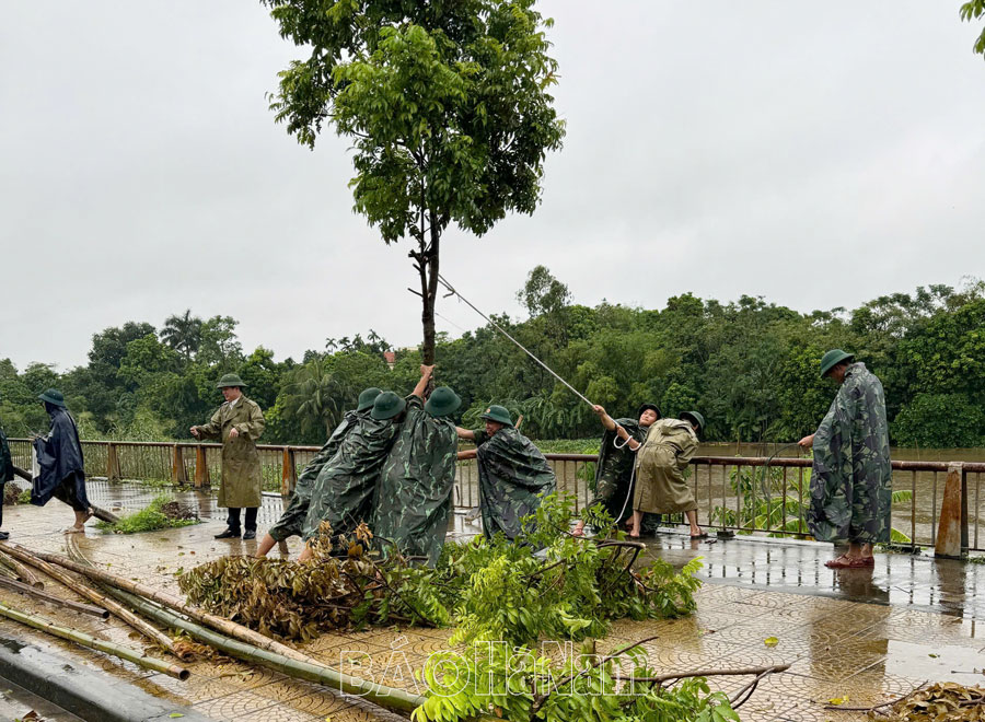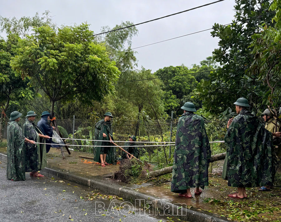 Khắc phục hậu quả do cơn bão số 3 để lại, lực lượng đoàn viên thanh niên Bộ CHQS tỉnh đã tham gia dọn dẹp cây, cột điện đổ, sửa sang nhà cửa, buộc dựng lúa, hoa màu ở những diện tích bị ảnh hưởng cho bà con tại nhiều địa phương. Đặc biệt, ngày 9/9, lực lượng đoàn viên, thanh niên Bộ CHQS tỉnh đã nhanh chóng cơ động và kịp thời có mặt hỗ trợ nhân dân xã Phú Phúc (huyện Lý Nhân) giúp dân thu dọn cây màu bị đổ gãy, hư hại.