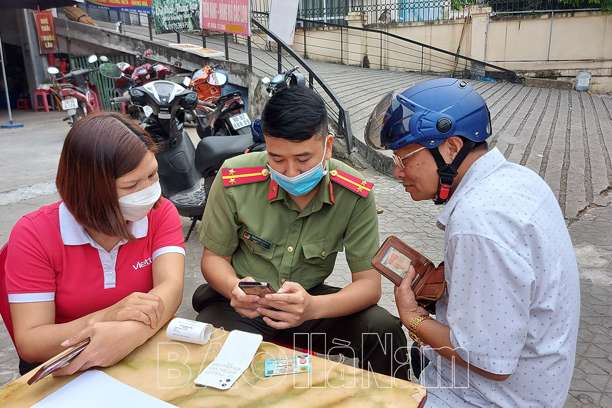 Tại đây các chiến sỹ công an, các đoàn viên thanh niên vừa tuyên truyền cho người dân về lợi ích, cách thức đăng ký tài khoản định danh điện tử, đồng thời hỗ trợ người dân đăng ký tài khoản định danh điện tử mức 1, hướng dẫn người dân đến trụ sở công an nơi cư trú đăng ký tài khoản định danh điện tử mức 2.