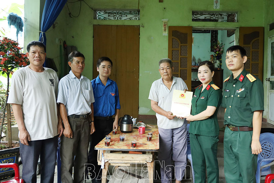 Nhân dịp kỷ niệm 77 năm Ngày Thương binh - Liệt sĩ (27/7/1947 - 27/7/2024), sáng 23/7, Đoàn Thanh niên – Hội Phụ nữ Bộ Chỉ huy Quân sự tỉnh phối hợp với Đoàn phường Lê Hồng Phong (TP Phủ Lý) tổ chức thăm, tặng quà cho 7 hộ gia đình chính sách có hoàn cảnh khó khăn trên địa bàn phường. Mỗi suất quà trị giá 500.000 đồng.