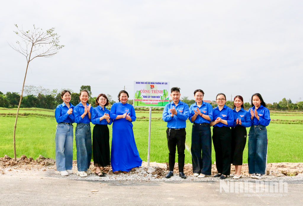 Đoàn Thanh niên phường Mỹ Lộc gắn biển khánh thành công trình “Hàng cây thanh niên”.