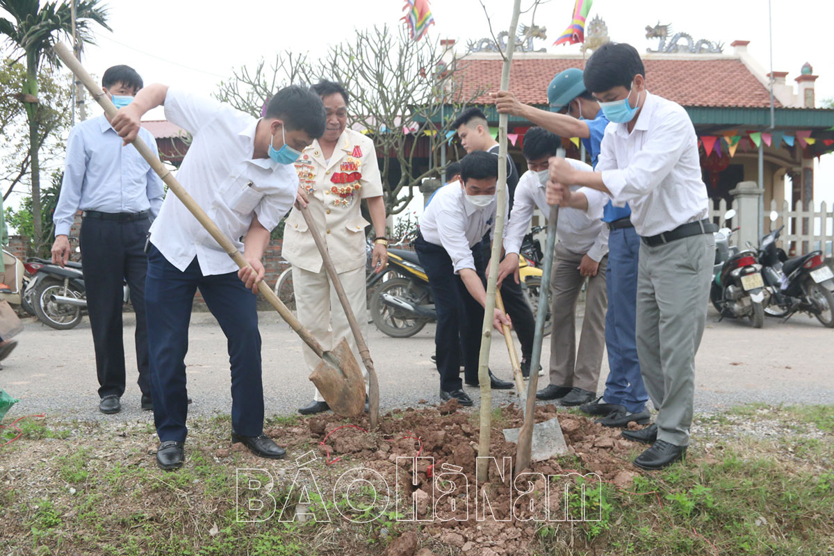Cấp ủy, chính quyền, các ban ngành, đoàn thể xã Chính Lý (Lý Nhân) cùng tham gia trồng cây trên tuyến đường cây thanh niên.