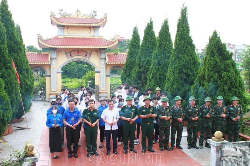 Cán bộ, Đoàn thanh niên Trung đoàn bộ binh 151 cùng đoàn viên thanh niên địa phương dâng hương tại nghĩa trang liệt sĩ phường Hoà Mạc.