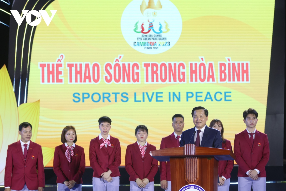 Phó Thủ tướng Lê Minh Khái nhấn mạnh: Các thành viên của Đoàn cần đoàn kết, khắc phục khó khăn, giữ vững kỷ luật, đem hết tinh thần và nghị lực để hoàn thành nhiệm vụ đã đề ra; thi đấu với tinh thần thể thao cao thượng, ngoan cường, sáng tạo, trung thực để đạt thành tích cao tại đại hội, góp phần nâng vị thế của thể thao Việt Nam lên một tầm cao mới và khẳng định được truyền thống văn hóa lâu đời của Việt Nam. Tôn trọng luật lệ thi đấu, tôn trọng truyền thống văn hóa của các quốc gia tham dự.
