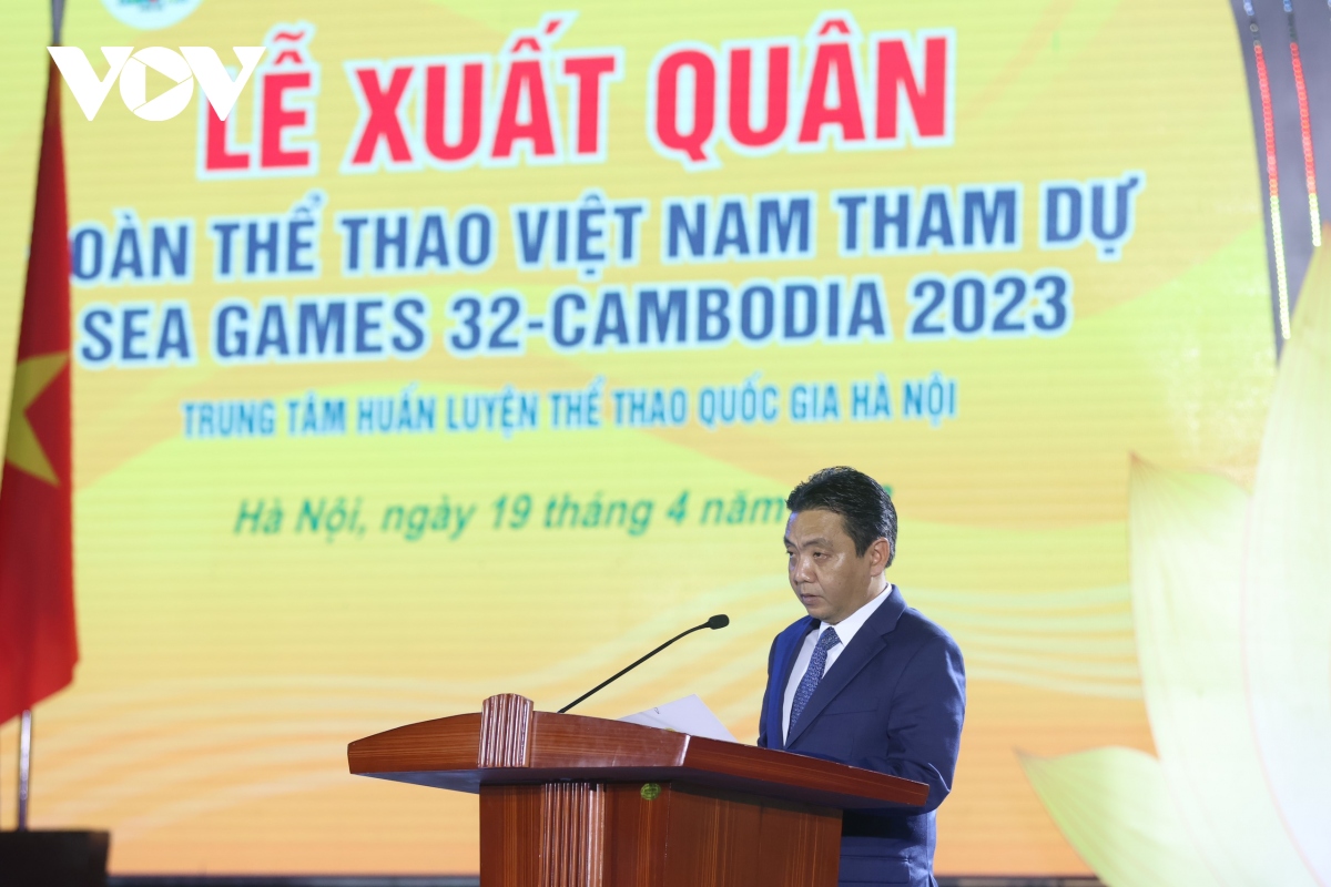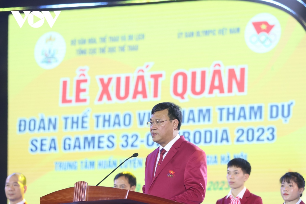 “Qua đây, Lãnh đạo Bộ VHTTDL cũng yêu cầu các VĐV của Đoàn Thể thao Việt Nam thi đấu hết mình vì màu cờ sắc áo, danh dự cũng như vị thế của thể thao Việt Nam và tin tưởng rằng toàn thể cán bộ, huấn luyện viên, VĐV của Đoàn thể thao Việt Nam luôn đoàn kết, tự tin, vì màu cờ sắc áo của Tổ quốc thi đấu thành công và giành thành tích tốt nhất tại SEA Games 32, đem về vinh quang cho Tổ quốc như mục tiêu đã đề ra.
