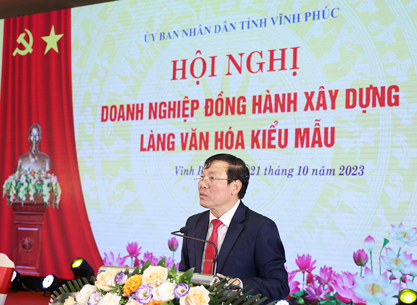 Phát biểu khai mạc hội nghị, Chủ tịch UBND tỉnh Lê Duy Thành nhấn mạnh: Nhằm cụ thể hóa và tổ chức thực hiện Nghị quyết số 19 ngày 16/3/2023 của Ban Thường vụ Tỉnh ủy về xây dựng LVHKM trên địa bàn tỉnh Vĩnh Phúc đến năm 2025, HĐND tỉnh Vĩnh Phúc đã ban hành Nghị quyết số 06 và 08 ngày 5/5/2023 quy định một số cơ chế đặc thù hỗ trợ xây dựng “Làng văn hóa kiểu mẫu” trên địa bàn tỉnh Vĩnh Phúc, giai đoạn 2023-2030 và thông qua Đề án xây dựng LVHKM trên địa bàn tỉnh. Mục tiêu xây dựng LVHKM trên địa bàn tỉnh trở thành nơi đáng sống, phát triển đồng bộ, toàn diện, bền vững về kinh tế, văn hóa, xã hội, môi trường và quốc phòng an ninh.
