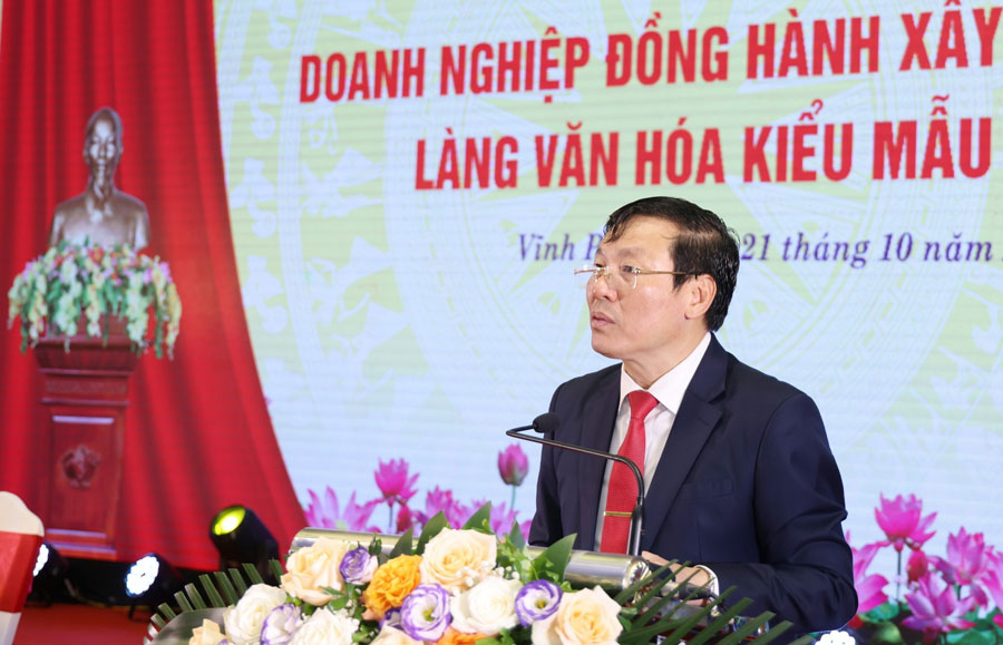 UBND tỉnh Vĩnh Phúc vừa tổ chức Hội nghị doanh nghiệp đồng hành xây dựng làng văn hóa kiểu mẫu. Tới dự có các đồng chí: Hoàng Thị Thúy Lan, Ủy viên Ban chấp hành T.Ư Đảng, Bí thư Tỉnh ủy, Chủ tịch HĐND tỉnh, Trưởng Đoàn ĐBQH tỉnh; Nguyễn Văn Khước, Tỉnh ủy viên, Phó Chủ tịch UBND tỉnh; Trần Đình Thiên, Nguyên Viện trưởng Viện Kinh tế Việt Nam.