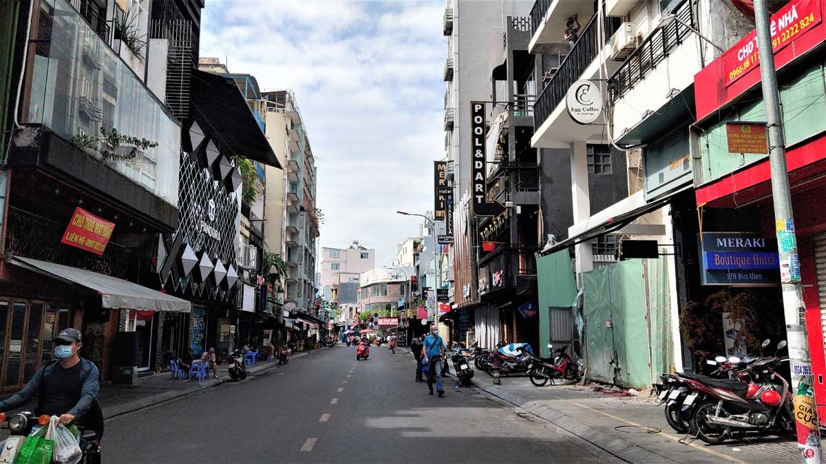 Khu phố Tây Bùi Viện vốn sầm uất khách du lịch thì giờ đây cũng đìu hiu, nhiều khách sạn và hàng quán đóng cửa im lìm.