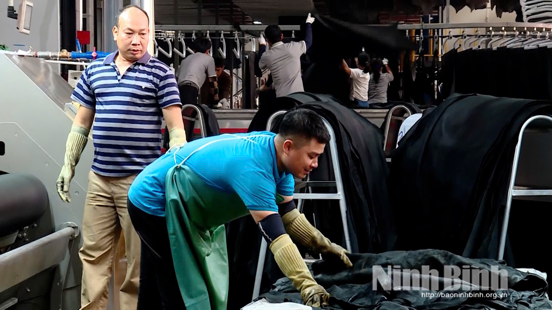 Công nhân Công ty TNHH Simona Leather xử lý sản phẩm da.