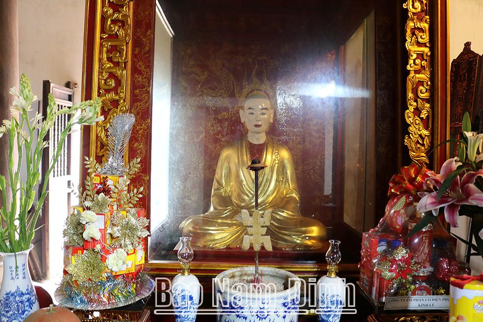 | Bảo vật Quốc gia - Bộ tượng Trúc Lâm Tam Tổ đang được bảo quản, thờ tự tại Chùa Tháp Phổ Minh thuộc Khu Di tích Lịch sử quốc gia đặc biệt Đền Trần - Chùa Tháp, phường Lộc Vượng (thành phố Nam Định). Trong ảnh: Tượng Đức Phật hoàng Trần Nhân Tông. |