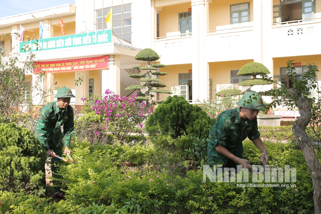 Cán bộ, chiến sĩ Đồn Biên phòng Quất Lâm luôn vững vàng tư tưởng, yên tâm công tác. (Trong ảnh: Chiến sĩ Đồn Biên phòng Quất Lâm cắt tỉa, trang trí vườn hoa cây cảnh chuẩn bị đón xuân mới).