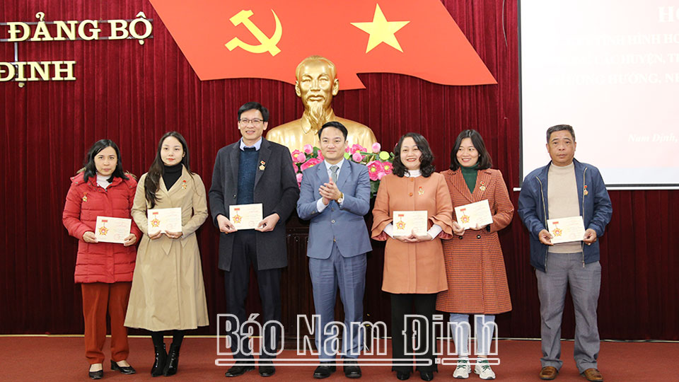 | Đồng chí Lê Văn Thế, TUV, Chánh Văn phòng Tỉnh ủy trao Kỷ niệm chương vì sự nghiệp Văn phòng cấp ủy cho 8 cá nhân đã có nhiều đóng góp cho sự nghiệp Văn phòng cấp ủy. |