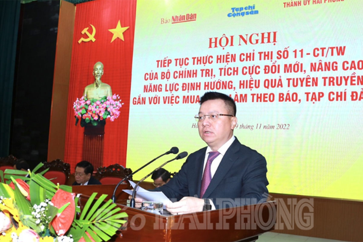 Chiều 9/11, tại Hải Phòng, Báo Nhân Dân, Tạp chí Cộng sản phối hợp với Thành ủy Hải Phòng tổ chức hội nghị “Tiếp tục thực hiện Chỉ thị 11-CT-TW của Bộ Chính trị, tích cực đổi mới, nâng cao năng lực định hướng, hiệu quả tuyên truyền gắn với việc mua, đọc và làm theo báo, tạp chí của Đảng”.