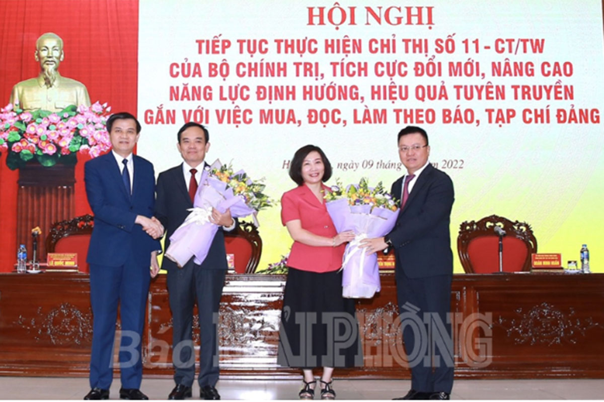 Dự, chủ trì hội nghị có các đồng chí: Nguyễn Trọng Nghĩa, Bí thư Trung ương Đảng, Trưởng Ban Tuyên giáo Trung ương; Lê Quốc Minh, Ủy viên Trung ương Đảng, Tổng Biên tập Báo Nhân Dân, Phó Trưởng Ban Tuyên giáo Trung ương, Chủ tịch Hội Nhà báo Việt Nam; Đoàn Minh Huấn, Ủy viên Trung ương Đảng, Tổng Biên tập Tạp chí Cộng sản; Trần Lưu Quang, Ủy viên Trung ương Đảng, Bí thư Thành ủy, Trưởng đoàn Đại biểu Quốc hội thành phố Hải Phòng.