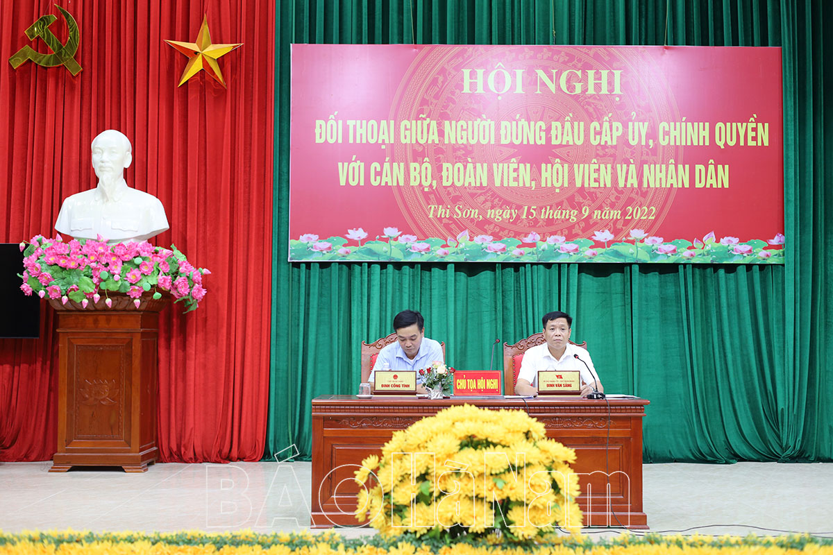 Bí thư Đảng ủy và Chủ tịch UBND xã Thi Sơn (Kim Bảng) chủ trì hội nghị đối thoại.