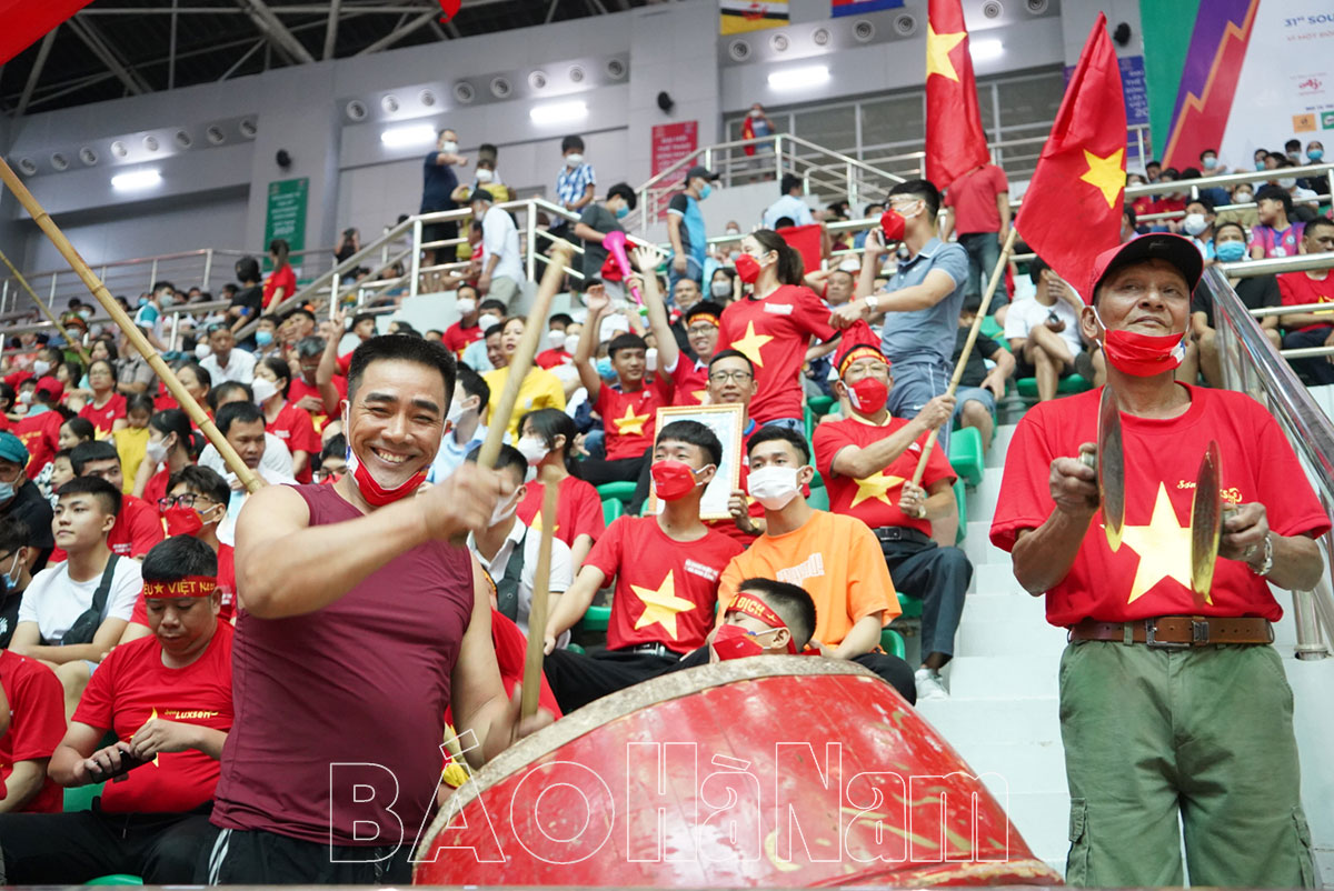 Các vận động viên ĐT futsal nữ Malaysia đến cổ vũ cho các đồng nghiệp nam.