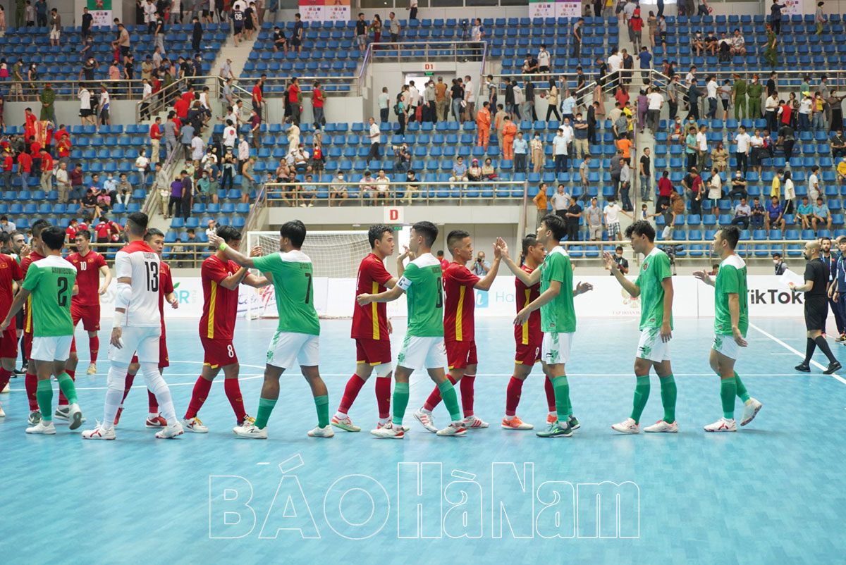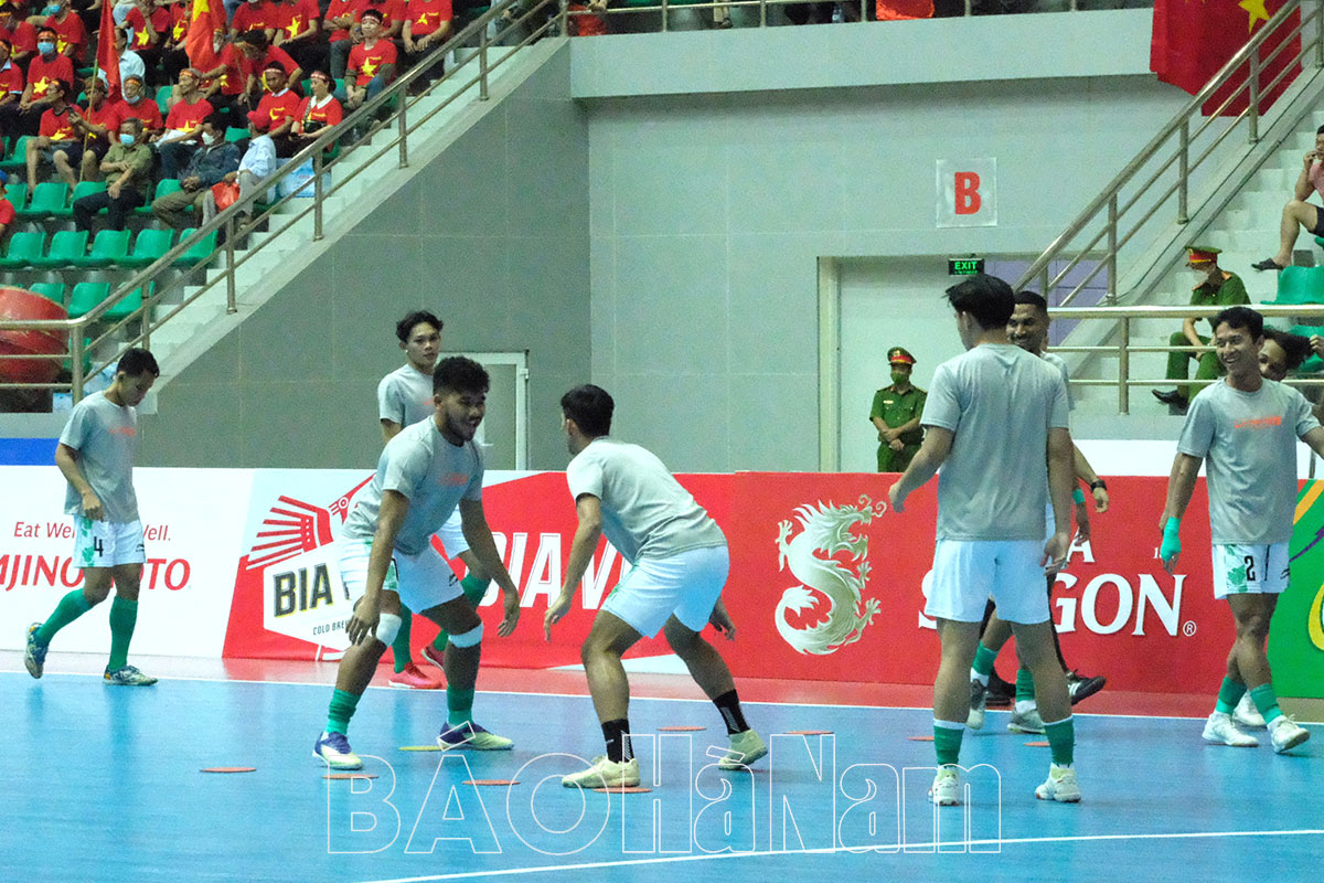 HLV Phạm Minh Giang trực tiếp chỉ đạo các học trò.Rất đông các cổ động viên Hà Nam đến sân cổ vũ cho Đội tuyển Futsal nam Việt Nam.