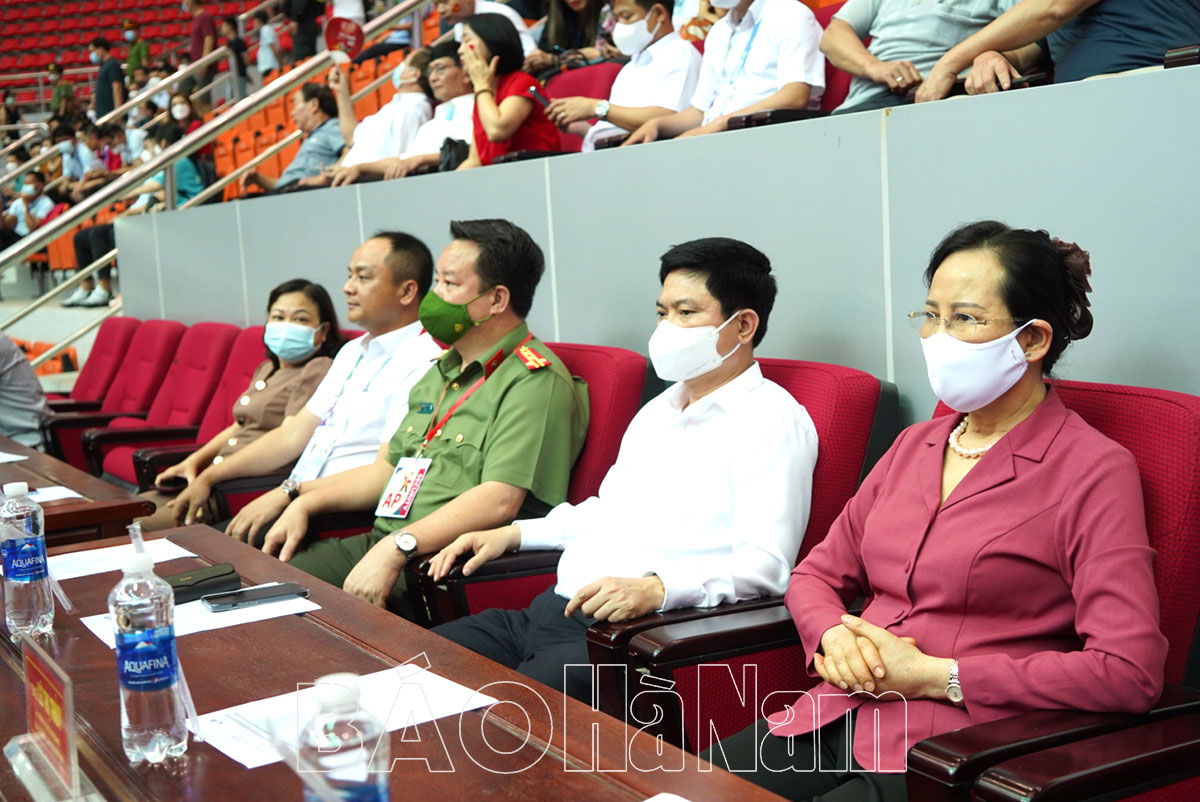 Đồng chí Bí thư Tỉnh ủy Lê Thị Thủy và đồng chí Chủ tịch UBND tỉnh Trương Quốc Huy cũng đã có mặt trên khán đài để theo dõi trận đấu.