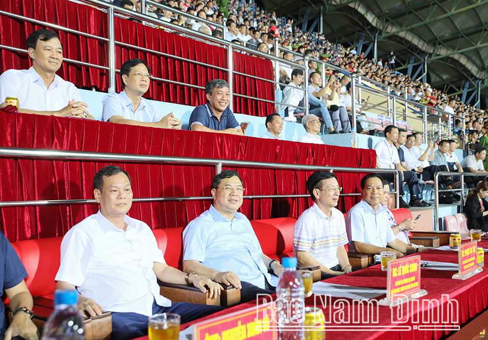 | Các đồng chí: Phạm Gia Túc, Ủy viên BCH Trung ương Đảng, Bí thư Tỉnh ủy; Lê Quốc Chỉnh, Phó Bí thư Thường trực Tỉnh ủy, Chủ tịch HĐND tỉnh, Trưởng đoàn Đoàn đại biểu Quốc hội tỉnh; Phạm Đình Nghị, Phó Bí thư Tỉnh ủy, Chủ tịch UBND tỉnh dự khán trận đấu. |