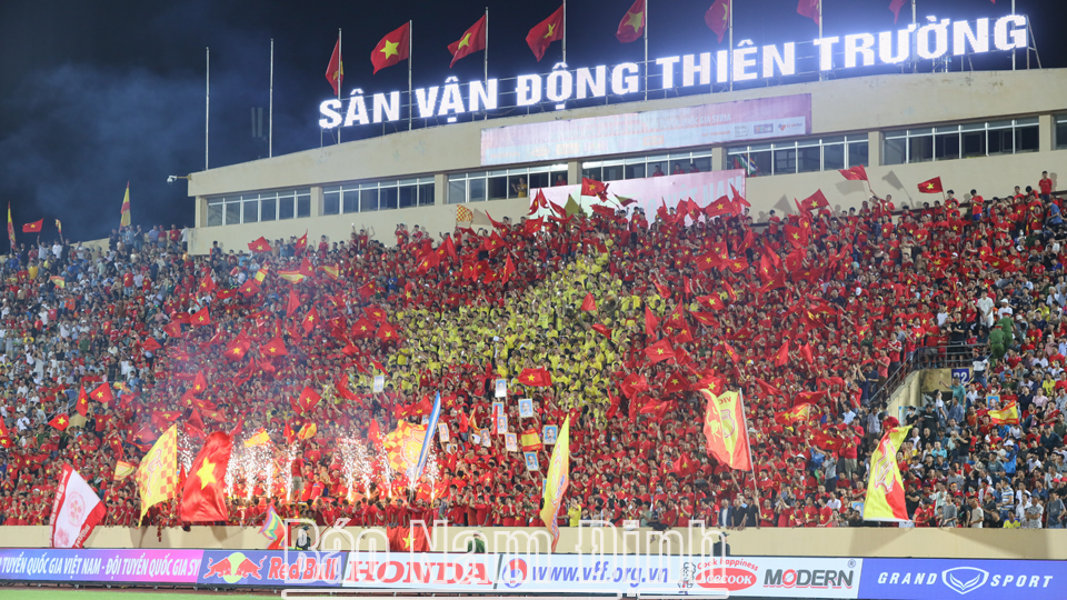 Trận đấu giữa đội tuyển Việt Nam gặp đội tuyển Syria thu hút sự quan tâm rất lớn từ người hâm mộ bóng đá Thành Nam; SVĐ Thiên Trường chào đón hơn 21,5 nghìn khán giả đến sân theo dõi, cổ vũ cho đội tuyển Việt Nam.