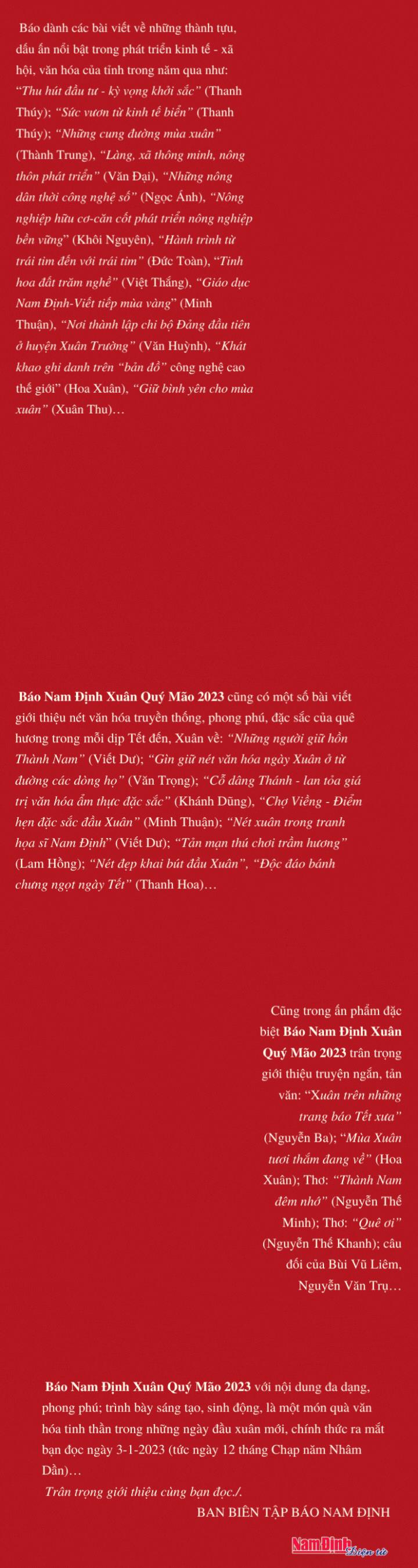 Đón đọc Báo Nam Định Xuân Quý Mão 2023