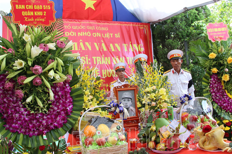 Lãnh đạo Sở LĐ-TB&XH, Bộ Chỉ huy Quân sự tỉnh cùng cán bộ, đảng viên và nhân dân địa phương di quan liệt sỹ đến nơi an nghỉ cuối cùng tại Nghĩa trang liệt sỹ xã Đồng Du.