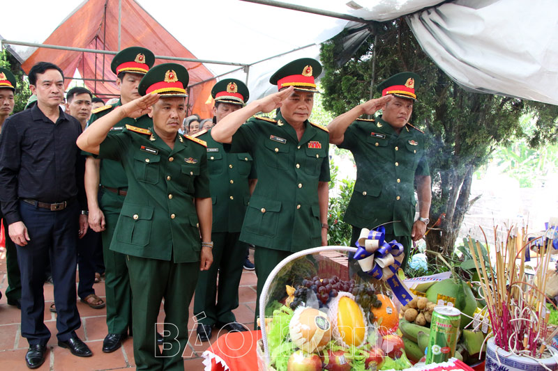 Những cán bộ quân đội làm nhiệm vụ bàn giao, đón nhận hài cốt liệt sỹ thành kính, xúc động an táng liệt sỹ Trần Văn Thoa tại Nghĩa trang Liệt sỹ xã Đồng Du.