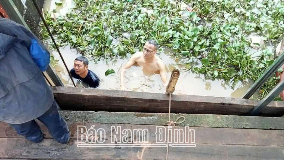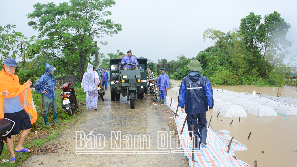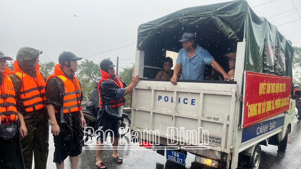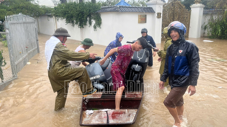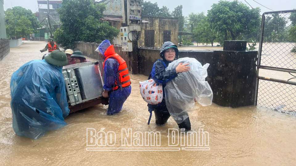 | Trong tình cảnh nước ngập sâu, lực lượng chức năng của tỉnh, thành phố Nam Định đã huy động 100% quân số ứng cứu, hỗ trợ nhân dân di dời tài sản, bảo đảm an toàn tuyệt đối về tính mạng cho người dân. |
