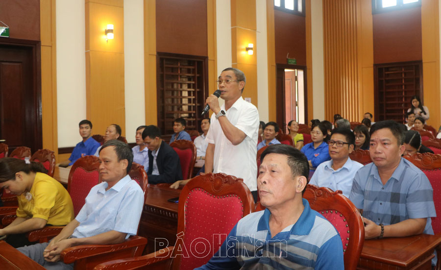 Tại buổi đối thoại, các đoàn viên, hội viên đã trao đổi 16 ý kiến, kiến nghị với người đứng đầu cấp ủy, chính quyền huyện liên quan đến các vấn đề: tháo gỡ khó khăn cho các hộ dân trên địa bàn các xã bị thiệt hại nặng nề về cây trồng và vật nuôi do ảnh hưởng bão số 3; giải pháp tạo việc làm cho nông dân tuổi trung niên (từ 45 tuổi trở lên) không còn ruộng để sản xuất do thu hồi đất phục vụ các dự án trên địa bàn; xử lý tình trạng gây tiếng ồn, ô nhiễm môi trường, nhất là các cơ sở sản xuất đồ gỗ ở trong khu dân cư, khi mài, đánh bóng, phun sơn; thu gom và xử lý rác thải; giải pháp đẩy mạnh việc chuyển đổi số đối với các di tích lịch sử trên địa bàn huyện; sắp xếp đội ngũ cán bộ dôi dư khi sáp nhập đơn vị cấp xã; chủ trương, giải pháp đồng hành, hỗ trợ doanh nghiệp sản xuất, kinh doanh có hiệu quả; khắc phục tình trạng tai nạn thương tích ở trẻ em; vốn cho thanh niên khởi nghiệp; bảo đảm an ninh trật tự và ngăn chặn tình trạng lừa đảo chiếm đoạt tài sản trên không gian mạng…