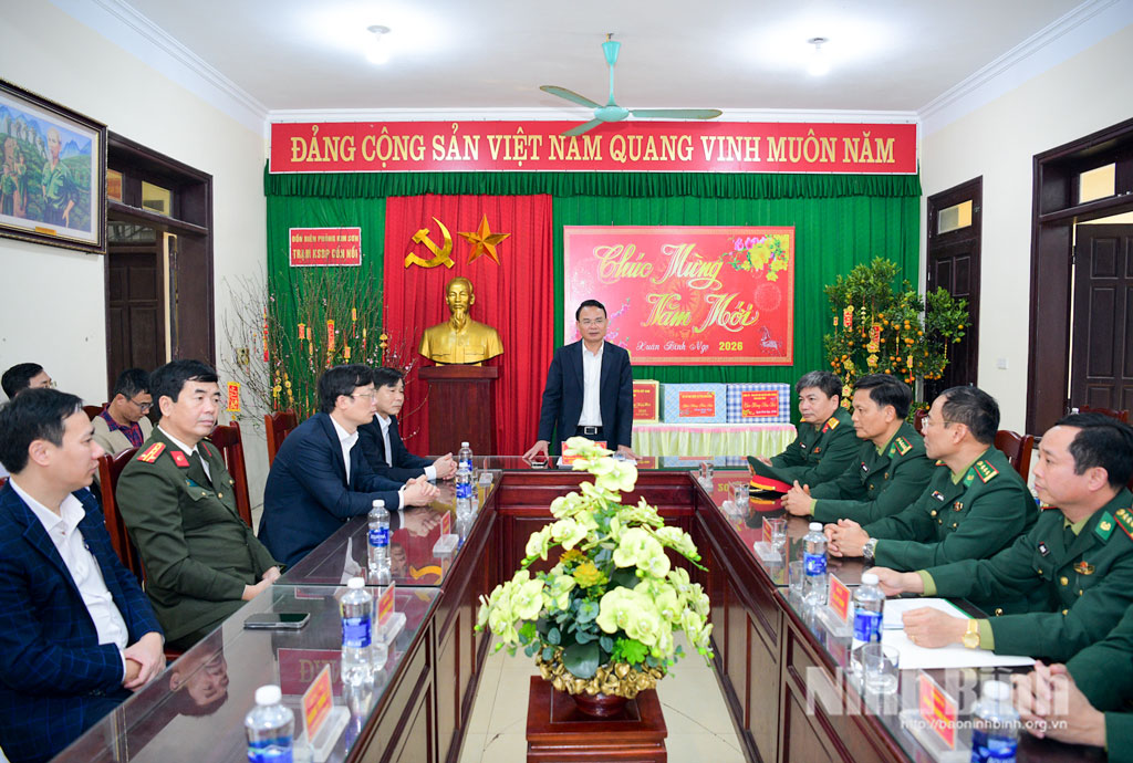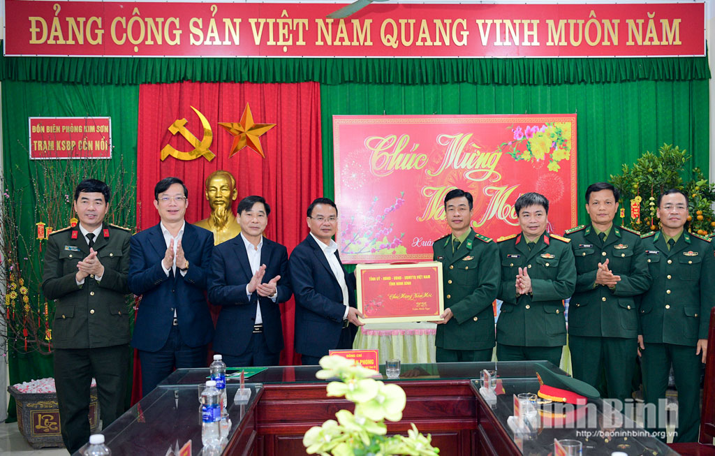 Nhân dịp năm mới, đồng chí Bí thư Tỉnh uỷ chúc cán bộ, chiến sĩ Đồn Biên phòng Kim Sơn và Trạm kiểm soát biên phòng Cồn Nổi sức khỏe, đoàn kết, hoàn thành xuất sắc nhiệm vụ được giao, đón Tết vui tươi, đầm ấm.