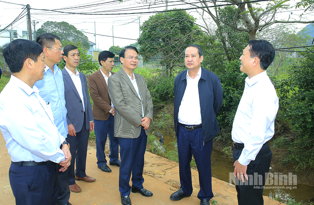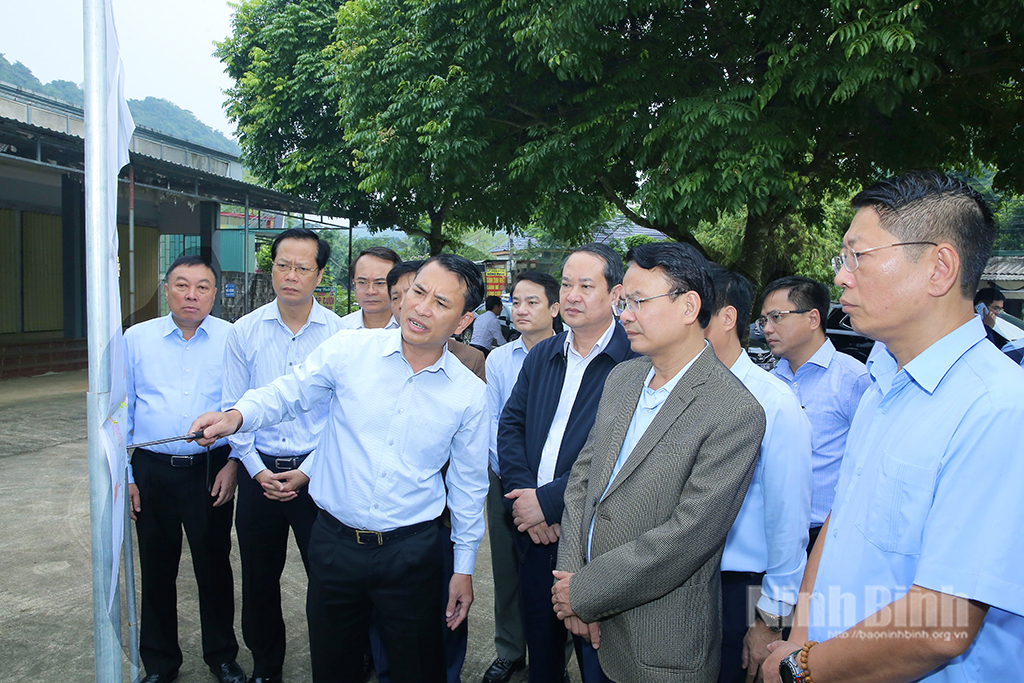 Trong chuyến công tác này, đồng chí Bí thư Tỉnh ủy và Đoàn công tác đã đi khảo sát thực tế một số công trình, dự án trọng điểm trên địa bàn, gồm tuyến đường giao thông liên vùng, tránh lũ kết nối đường ĐT 479D (thôn Bãi Cả) với xã Thành Vinh, tỉnh Thanh Hóa và dự án kè, chống sạt lở, tiêu thoát lũ Suối Nga bảo vệ 7 khu dân cư, rừng phòng hộ và phát triển du lịch cộng đồng xã Cúc Phương. Đây là những dự án có ý nghĩa quan trọng trong phát triển hạ tầng, phòng chống thiên tai và thúc đẩy phát triển kinh tế- xã hội của địa phương.