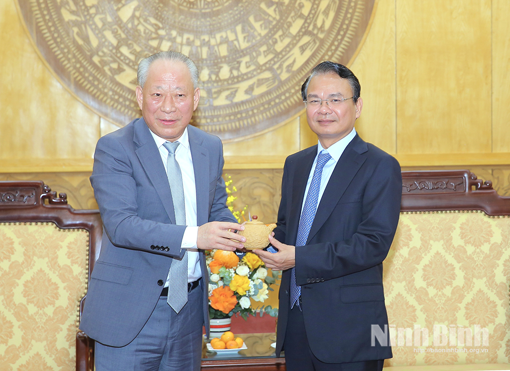Nhân dịp này, hai bên gửi lời chúc tốt đẹp và trao tặng nhau những món quà lưu niệm là đặc trưng văn hóa địa phương, với mong muốn tỉnh Ninh Bình và Tập đoàn sẽ có sự hợp tác và đạt được những thành công trong thời gian tới.