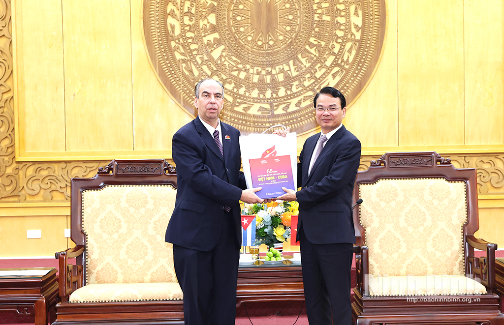 Đồng chí Bí thư Tỉnh uỷ cho biết sau hợp nhất, tỉnh Ninh Bình có không gian rộng mở để hợp tác và phát triển trên tất cả các lĩnh vực. Ninh Bình cũng là tỉnh có bề dày truyền thống phát triển công nghiệp công nghệ cao, nông nghiệp xanh, du lịch gắn với di sản. Tỉnh sẵn sàng hợp tác ở các lĩnh vực khác như: giáo dục, y tế, văn hóa, du lịch, đối ngoại. Đồng chí, mong muốn Đại sứ trên cương vị công tác của mình tiếp tục kết nối các doanh nghiệp 2 bên, qua đó đẩy mạnh quan hệ hợp tác đi vào chiều sâu và hiệu quả hơn, góp phần vun đắp tình hữu nghị Việt Nam-Cuba ngày càng bền chặt, thắm thiết hơn.