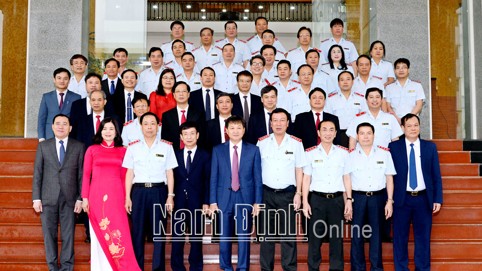 | Phó Thủ tướng Chính phủ Lê Minh Khái và Tổng Thanh tra Chính phủ Đoàn Hồng Phong chụp ảnh với lãnh đạo Thanh tra Chính phủ, lãnh đạo tỉnh Nam Định.