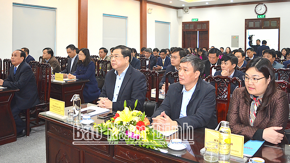 | Đồng chí Phạm Gia Túc, Ủy viên BCH Trung ương Đảng, Bí thư Tỉnh ủy và các đồng chí lãnh đạo tỉnh dự hội nghị triển khai công tác thống kê năm 2023. |