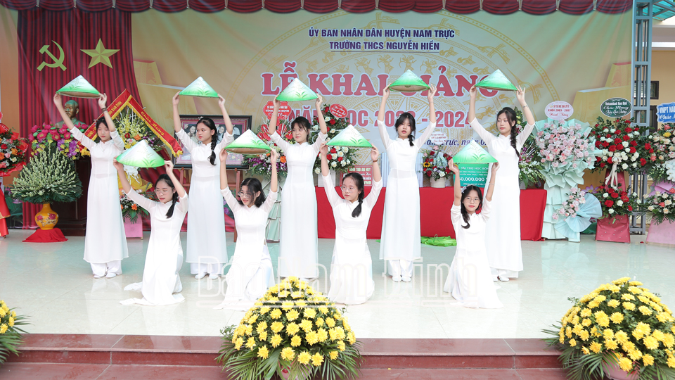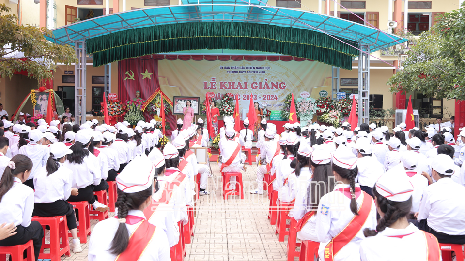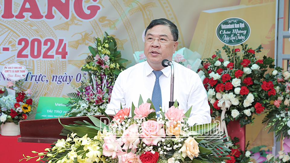 Phát biểu tại lễ khai giảng, đồng chí Bí thư Tỉnh ủy Phạm Gia Túc ghi nhận và biểu dương truyền thống “Dạy tốt - học tốt” của Trường THCS Nguyễn Hiền, đồng thời nhấn mạnh: Năm học 2023-2024 là năm thứ tư ngành Giáo dục triển khai đổi mới chương trình, sách giáo khoa giáo dục phổ thông và là năm học đầu triển khai đối với lớp 4, lớp 8 và lớp 11.