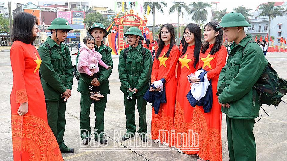 | Tuổi trẻ huyện Giao Thủy động viên thanh niên lên đường nhập ngũ. |