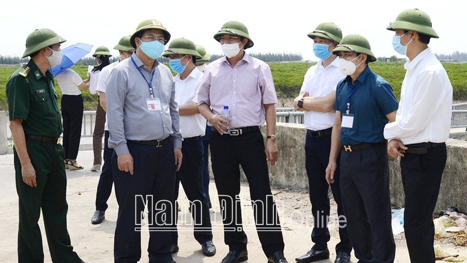 | Đồng chí Bí thư Tỉnh ủy Phạm Gia Túc kiểm tra công tác phát triển kinh tế ở khu vực Cồn Xanh (Nghĩa Hưng). |